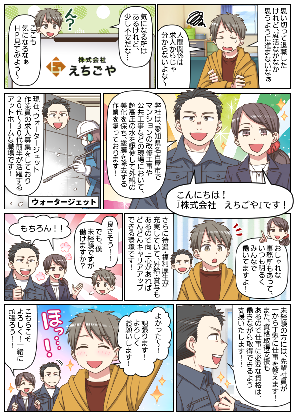 | 仕事内容 | マンションの改修工事や公共工事などの現場において、超高圧の水を駆使して外観の美化を保ち、塗膜を除去する作業が主なお仕事 |